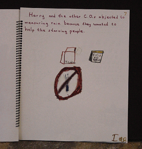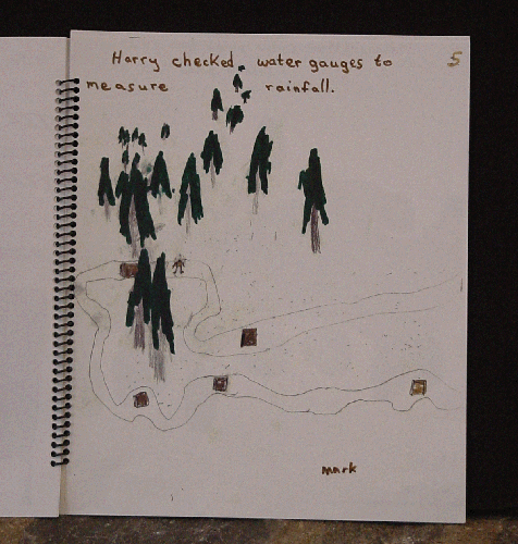 Harry checked water guages to measure rainfall. (Artist: Mark)
