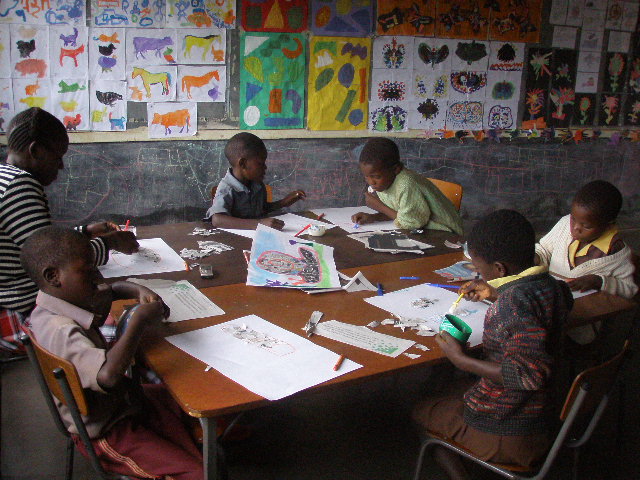 Hazel, with Lee, started Playtime for the children of the Hlekweni community, who have little access to toys or craft activities. Playtime was held every day for an hour in the afternoon, with a mix of group games and songs and individual free play with the toys in the Toy Library supplied by Hazel, Lee and other gifts. Playtime is continuing with two Hlekweni play leaders, thanks to funding brought by Hazel. Numbers range from 35-55 children from two to fifteen.