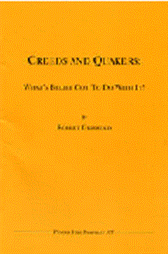 Quaker spiritual authority lies not in belief systems � in creeds - but in the direct communion between individual Friends and the Divine Spirit. All other forms of authority, �be they written words, steeple-houses or a clerical hierarchy,� cannot replace this direct communion. While early Friends� refusal to formulate a creed threatened existing religious practice and brought them great persecution, this historic witness against creeds is not fully appreciated by Friends today. The pamphlet�s author asserts that Friends too often hold Quaker testimonies as ideals, as ends in themselves, rather than as fruits of the Spirit. Without spiritual grounding, testimonies become creeds. In the absence of the profound authority of a faith that defies verbal comprehension and words, the historic Quaker witness to the world is in danger.